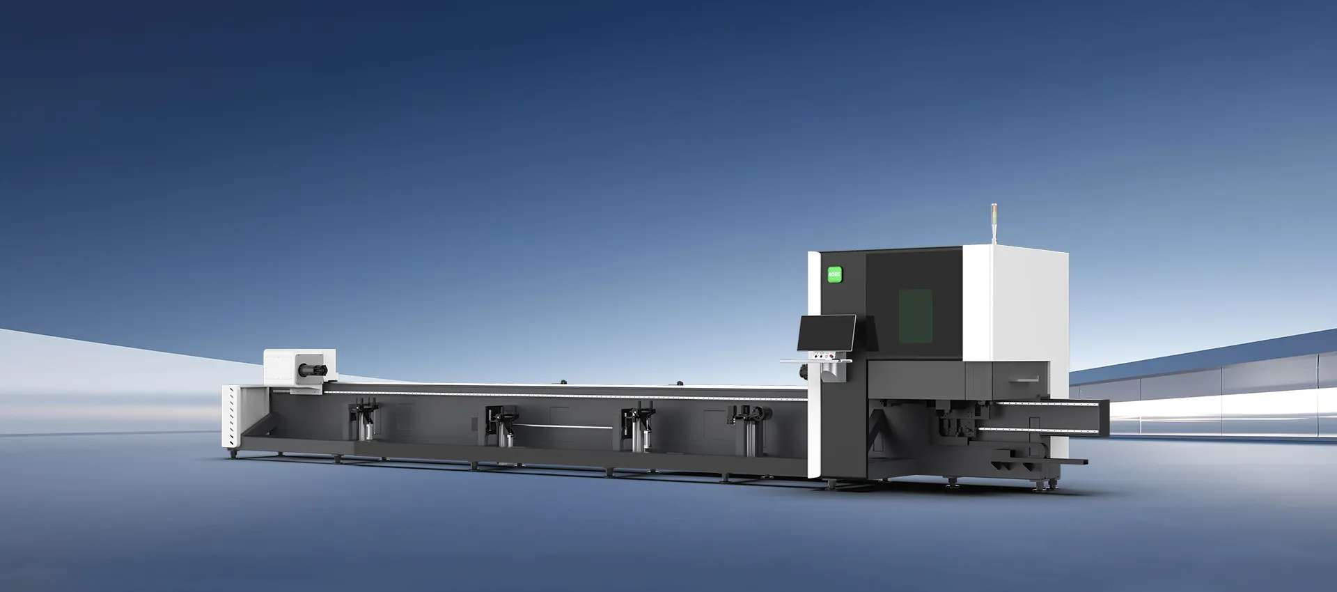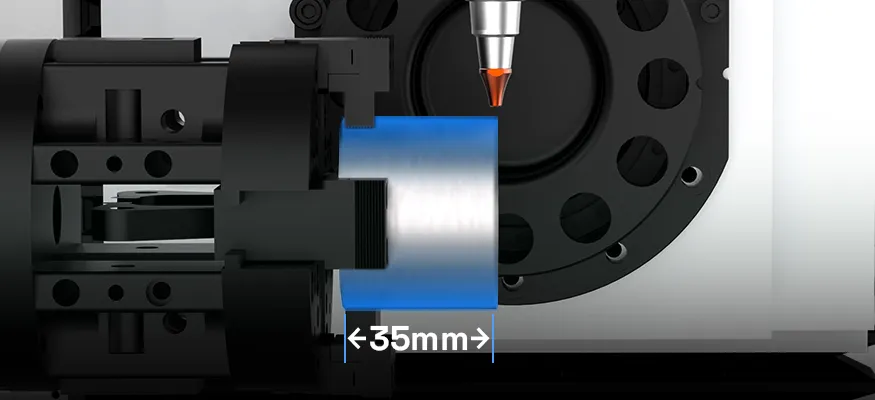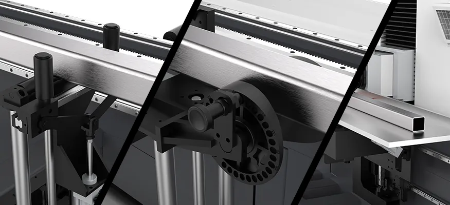 O mandril frontal servoacionado move-se para posicionar a cabeça do laser entre os mandris frontal e traseiro durante o corte. Essa configuração garante alta precisão para peças longas e assegura a qualidade consistente do produto final para nossos clientes.