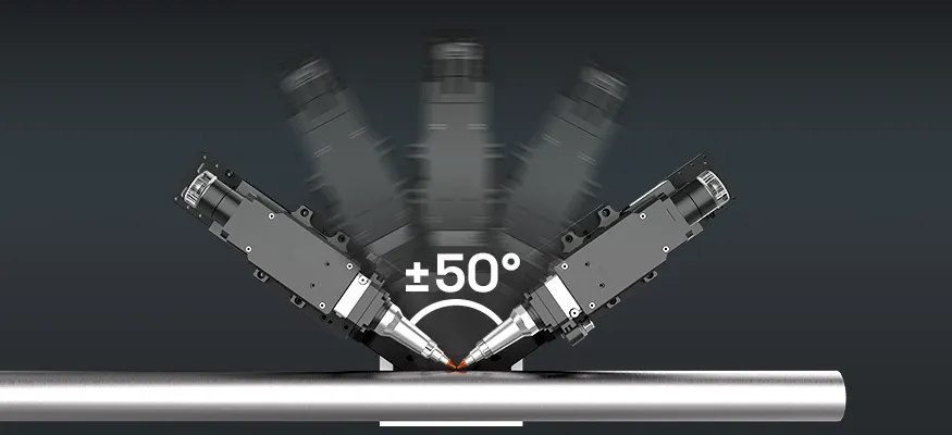 Permite o corte em chanfro de ±50° em tubos. Com o bocal de corte localizado no centro de rotação, obtém-se maior precisão de corte. Não há necessidade de alimentação repetida do tubo, evitando a deformação de tubos de paredes finas causada por aperto e tração repetidos, garantindo assim maior precisão no corte em chanfro de pequeno diâmetro. Suporta emendas de tubos em qualquer ângulo, melhorando a eficiência da soldagem em 30%.